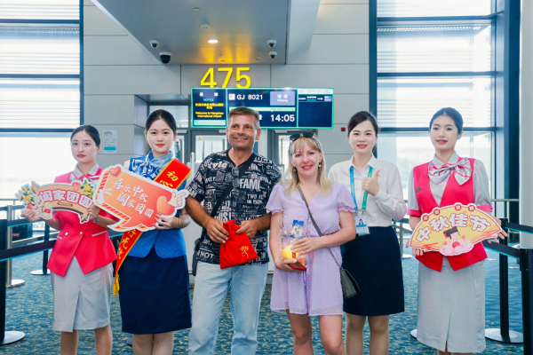 下午,活动移场至T4国际出发475机位。航站区中心与浙江长龙航空选取GJ8021作为“天命人”中秋出港航班,在廊桥侧共为110位旅客赠送中秋福袋。